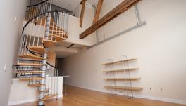 This 2 bedroom 2 bathroom loft apartment is truly unique. Upon entering the apartment you can’t help but notice the accent wall, but it is not long before you see the beautiful Italian Staircase leading to the loft. The open kitchen and living room makes this a great space for entertaining friends. The apartment also includes wardrobes in each bedroom and movable shelving.