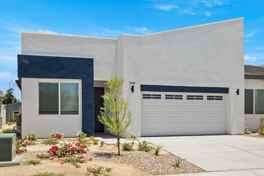 New Home in Guard Gated Indian Palms Country Club with Solar and a tankless water heater. Open floor plan with bonus room off of living room that could be an office/den. Stainless Steel appliances in kitchen, hardwood flooring throughout, quartz countertops, large walk in pantry, walk in closets, primary bedroom has an oversized tub, walk in shower and double sinks. Indoor laundry room with a washer, dryer and sink. Large covered back patio with gas hook up for a grill. Community pool and spa. Double car garage. Landscape maintenance included.