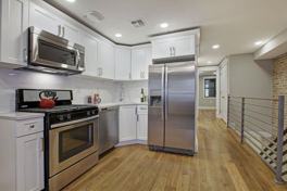 This enormous garden-level duplex has been fully renovated with meticulous attention to detail and extravagant amenities within the past year. You will find exposed brick walls and Canadian white oak floors throughout. The main level features a south-facing, open concept living/dining space and a new kitchen with marble countertops, top of the line appliances and maplewood cabinetry. The upper bathroom is equipped with a jacuzzi tub, jetted shower, marble sink and radiant-heated floor. A spacious, yet cozy back bedroom leads out onto the garden area. This shared backyard is spacious and open, with lawn and shaded seating, and is meant to be enjoyed by tenants of this apartment.