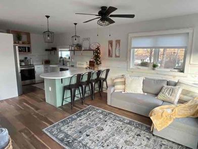 This brand new, family-friendly, 2-bedroom cozy, modern cottage packed full of amenities is nestled in the village of Winthrop w/ lake views. There is a large yard with fire pit, snowmobile & walking trail access out back. A 10-minute walk to the beach & boat launch on Maranacook lake, as well as multiple local eateries and shops. A massage studio and sauna are located below. Shared driveway with owner's home.