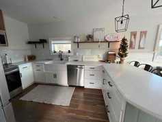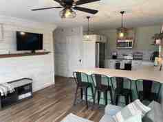 Fully appointed kitchen, stackable washer and dryer. This has all the amenities of home! Open concept kitchen and living room. A large private deck overlooking lake views and front lawn with fire pit.