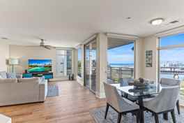 **OCEAN VIEWS from every room!** Rent = $5,900.00 (Water & Trash included in rent) Live the ultimate beach lifestyle in comfort and luxury! This exquisite 3-bedroom, 2-bathroom condo offers magnificent WHITE WATER ocean views, as well as stunning vistas of Oceanside's picturesque harbor and marina. You'll be steps away from the sun, sand, and surf, with the beach, marina, and downtown Oceanside's vibrant restaurant and shopping scene all within easy walking distance. This rarely available corner end unit boasts one of the largest floor plans in the complex, spanning a generous 1,519 square feet of living space. Say goodbye to stairs, as this single-level unit offers the convenience of elevator access directly from the garage. This condo is designed for modern coastal living. An open-concept layout and a spacious view deck make entertaining a breeze, and the ocean views from the living room, dining area, and kitchen are nothing short of breathtaking. Even the primary bedroom offers a daily dose of the sea's beauty, featuring dual vanities, a walk-in shower, and a spacious walk-in closet with built-ins. Convenience meets style with private in-unit laundry, complete with a new stackable washer and dryer. Natural light floods the corner location, creating a cheerful, sun-soaked retreat you'll love to call home. Additional highlights include central A/C, Kitchen-Aid appliances, a formal entry, and ceiling fans throughout. With gated and secured parking, you'll enjoy two side-by-side parking spaces, bicycle storage, and a private storage locker. Plus, Seacliff offers resort-like amenities, including a sparkling pool and spa, a pristine gym and clubhouse, and an outdoor lounge and BBQ area for your enjoyment. This is your opportunity to become an owner in one of the most sought-after locations on the California coast, with miles of gentle beach breaks, a New England-style harbor, an iconic wooden pier, and a host of new restaurants and shops to explore. Don't miss out on this rare chance to embrace the beachfront lifestyle of your dreams. HOA requires $200 Move In Fee.