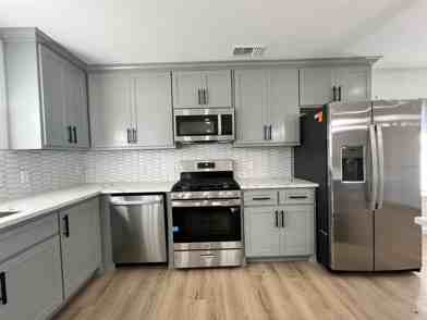 Beautiful brick home with 3 bedrooms and 2 full baths. This beauty has been completely remodeled with modern light fixtures throughout, black door handles and plumbing throughout. Open floor plan with tiled fireplace, spacious kitchen with new custom cabinets, Quartz countertops, white modern backsplash and newer SS appliances. Luxury vinyl throughout the home, NO carpet. Master bedroom has new modern fans and master bathroom has double vanity with black & gold touches and two large WICs. Two secondary bedrooms and hall bath have similar modern updates. Brand new HVAC, fence and appliances. Conveniently located near highways, shopping & dining and a short drive to Downtown McKinney. Come See today!