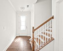 Step into this beautifully designed home featuring an open-concept layout with rich, prefinished wood flooring flowing seamlessly through the foyer, living room, dining area, and kitchen. The gourmet kitchen is a true standout, showcasing a large center island, stylish backsplash, farmhouse sink, gas range, walk-in pantry, and stainless steel appliances, perfect for both everyday living and entertaining.