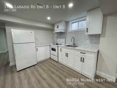 Welcome to 1784 Labadie Unit B. Discover serenity in this beautifully renovated 2-bedroom, 1-bathroom lower-level unit in a quiet East Windsor neighbourhood. This bright and spacious unit features an open-concept living room and kitchen, two generously sized bedrooms, and a stunning 4-piece bathroom.