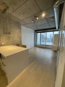 -Hardwood and Tile throughout, with industrial cement ceilings and walls