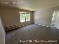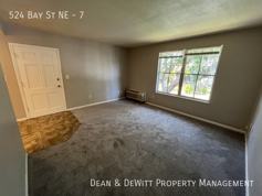 Second floor apartment has neutral carpet or tile throughout