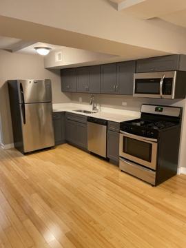 Newly renovated lower-level unit with a separate dining area in the kitchen. All three bedrooms feature new flooring, while the living and kitchen areas boast beautiful wood floors. Enjoy the convenience of in-unit laundry.