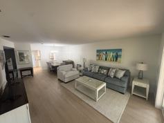 This beautifully remodeled 2-bedroom, 2-bath villa is located in the desirable 55+ Fairwinds community, offering an inviting blend of modern comfort and relaxed coastal Florida style. Thoughtfully upgraded throughout, the home features no carpet, upgraded kitchen counters and appliances, and tasteful new furnishings that create a light, bright, and welcoming atmosphere. Subtle antique accents are paired with fresh coastal touches, adding character without sacrificing comfort.