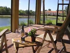 Enjoy outdoor living from roofed lanai overlooking large lake