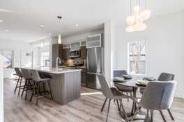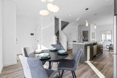 - Sleek quartz countertops on the island/breakfast bar, perfect for meal prep and casual dining
