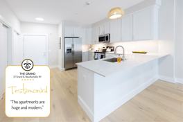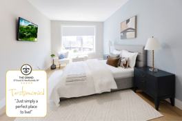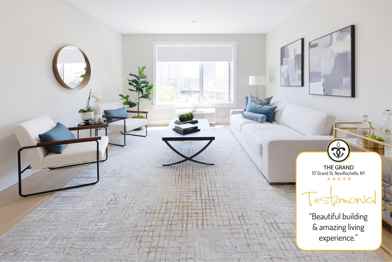 LAGUNA 890sf | $3,000-3,100 per month w/o terrace 890sf+252sf terrace | $3,126 per month This open concept floor plan offers double exposure windows, stainless steel appliances, stone countertops, custom cabinetry, in unit washer/dryer, rainfall showers and an over-sized bedroom with great storage space. The Grand is a brand new luxury rental community consisting of 70 large designer apartments with unmatched amenities. It is located in Downtown New Rochelle, just 28 minutes north of Manhattan. Rent includes a full suite of amenities including a state-of-the-art fitness center, lobby & rooftop lounges, a business center, a storage facility & multiple charging stations. The amenity package also extends to New Rochelle’s beautiful waterfront. Tenants become instant members to the VIP Country Club where they enjoy access to the club’s private cabanas, a pool, beach, cafe, bar, volleyball, kayaks, tennis courts, bbq stations and organized events.