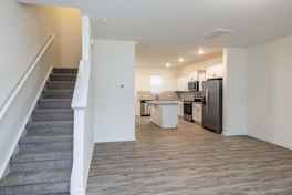The open‑concept layout features a spacious kitchen with a granite island, stainless steel appliances, tile backsplash, and wood‑laminate flooring, ideal for everyday living. Landscaping is included for easy, low‑maintenance living.