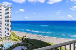 Sophisticated 14th floor residence boasting breathtaking views of both the ocean and intracoastal from every room. Remodeled to perfection with an eye for detail. Available for annual term only. Contemporary open floor plan with luxurious finishes, brand-new furniture and too many upgrades to list. Oversized terrace with endless views of the ocean. The full-amenity building is situated directly on the sand, granting you private beach access. Experience a splendid oceanfront swimming pool, a state-of-the-art fitness room, and two tennis courts. Located at one of Boca's most coveted beach spots, you're also close to a variety of restaurants and shopping destinations. Just a few minutes away from Mizner Park and Royal Palm Plaza, you will never be far from the action.