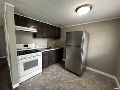Welcome home to this fresh 1 bed/1bath ground level apartment. New paint, fixtures, trim, flooring, bathroom and kitchen! Washer hook up, no dryer. tenant provides washer. Close to shopping and interstate while sitting in a residential neighborhood. Off street parking. Wall unit AC provided. Tenant pays Ameren & $25/month for sewer/trash. Water is included. No pets