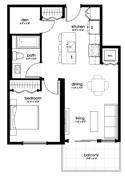 656 square feet. 1 bedroom + 1 den on the 3rd floor