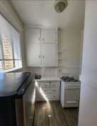 - Kitchen off the living are with laminate wood flooring, gas stove, refrigerator