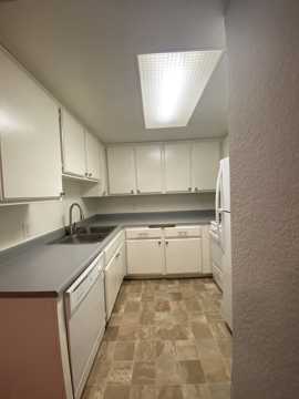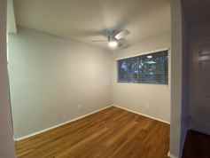 This upper front unit features the following: laminate wood floors and carpet in bedrooms, freshly painted, fridge, gas stove, dishwasher, built-in microwave, ceiling fans, blinds, shared on-site laundry room, no-smoking unit, assigned gated parking space, no pets. This unit is on the Manchester Blvd side of the building. Close to park, shopping centers and freeways, Airport too.