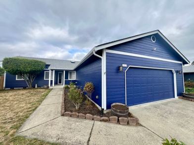 3 BD, 2.5 BA, 1,433 SF rambler on quiet cul-de-sac with modern updates throughout. Open floor plan living, dining, and kitchen with wood laminate throughout. Living includes large mounted TV and fireplace. Kitchen includes granite countertops, ample storage, eat-in bar with stools, and stainless steel appliances (Refrig, electric range, dishwasher, and microwave). Laundry, 1/2 bath, and garage access off kitchen. Dining area has back door that leads to fully fenced back yard with covered patio and storage shed. Yard also offers a plum tree and grape vines. Primary bedroom with en suite and walk-in closet. Garage includes large safe. Tenant to maintain all utilities. Regular yard service provided. No pets allowed.
