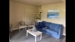 The main living area, kitchen, master bedroom (queen) and bathroom are located on the second level. Enjoy meals prepared in it's fully equipped kitchen with a large dining table. A cozy fireplace is a focal point of the living room which includes a queen sleeper sofa. Enjoy a lovely view of the golf course from large windows in the living room. First floor has second bathroom and two bedrooms (each with 2 twin beds). Wi-Fi, television, and in-unit washer/dryer are included.