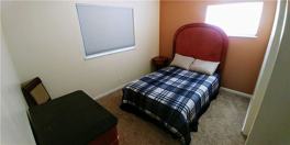 I have a fully furnished private room available in my spacious home, which includes three living areas for relaxation, high-speed fiber internet hardwired into each room, and main-level laundry. The common areas feature living rooms, a family room, a kitchen, and a bathroom shared with two other roommates. The room itself is equipped with quality furnishings, including a queen bed with a headboard, drawers, an end table.