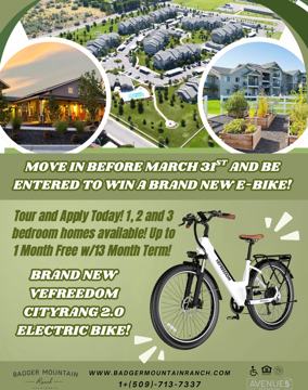 Nestled in a great South Richland neighborhood, Badger Mountain Ranch offers brand new one-, two- and three-bedroom apartments for rent. Enjoy an array of amenities including a theatre room, a shimmering pool and an invigorating spa where the serene setting, coupled with an awesome mountain view, will whisk you away. Part of the Richland School District, the community offers a prestigious Westcliffe address off of Keene Road in the Badger Mountain Village area. You will be proud to invite guests to your luxurious apartment home where style is at its finest.