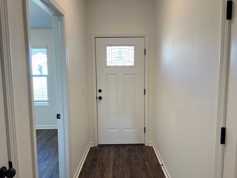 The kitchen features a stove, microwave, dishwasher, custom cabinets, a stainless steel fridge, and vinyl flooring that extends throughout the home, which means NO carpet whatsoever. The backyard includes a relaxing covered patio and a spacious grass backyard.