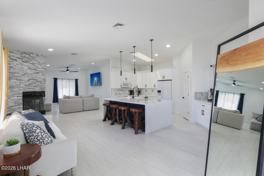 Upscale ''Kicking Horse'' neighborhood. 1,945 sqft of living area. 3 car drive-thru garage (almost 1,000 sqft), as well as gated side RV parking. Recent, major remodel throughout. Lots of natural light in this great, open floor plan. Back yard paradise with pool, barbecue kiosk and peek-a-boo lake view. Tastefully furnished, supplied, and ready to move in. Just bring your suitcase.