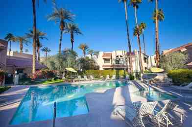 Two bedroom two bath condo. Living room/dining area looks out thru wall of glass to private patio surrounded by lush park like trees. Excellent floor plan includes 2 separate suites. Laundry in unit. Downstairs condo in South Palm Springs. Esprit is a gated community. Well manicured grounds with pool, spa, tennis and pickleball courts. Complex is blocks away from 2 public golf courses, major shopping (Rimcrest shopping center)with Starbucks, Target and Trader Joe and many more.