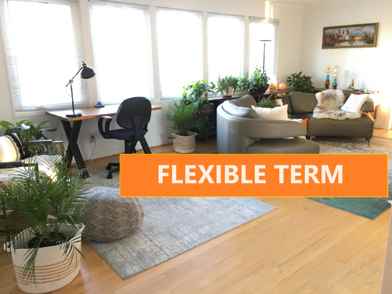 Bright living room opens to a recently renovated, chef's dream kitchen with cozy wood-burning stove. Master bedroom has a comfortable queen bed. 2nd BR was converted to a professional home office. Additional desk in LR for working couples. Two bathrooms, one with bathtub and one with a 4ft by 4ft shower and washer/dryer for European-style efficiency.