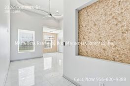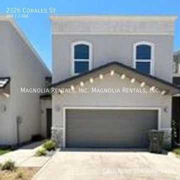 Welcome to 2326 Corales, where a stunning 2-bedroom, 2-bathroom home awaits you. This gated property offers a unique blend of comfort and style with its open floor plan, vaulted ceilings, and modern fixtures. The kitchen is equipped with stainless steel appliances, including a refrigerator, microwave, and stove/oven, making meal preparation a breeze. The living room, with its high ceilings and ceiling fans, provides a spacious area for relaxation and entertainment. The home also features a garage for secure parking and a yard for outdoor enjoyment. For your convenience, the property comes with 24/7 maintenance support and laundry hookups. The home is pet-friendly, with breed restrictions, and the tenant is responsible for all utilities. Experience the comfort of central AC and the luxury of a walk-in closet in this beautiful home. Please note, this is a no-smoking property.