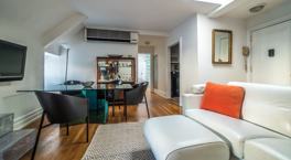 This is a beautifully bright, well furnished and accessorized apartment, located on the top floor of a famous landmark building – The Ansonia. There are Mitsubishi air conditioners. You have two large porthole windows in the living room and two in the bedroom. There is a practical and attractive custom made glass dresser. The bedroom has a flip-top desk and a Queen Sized bed of excellent quality. The living room has designer and vintage pieces and is both comfortable and handsomely furnished. There are two skylights making the apartment bright even on overcast days. The building has a great furnished roof deck with an amazing view, with steps up from the elevator. This residence is perfectly located across the street from Fairway and one block from Trader Joe's. Restaurants and shops are convenient and so is mass transit with the subway across the street. You are a short walk from Lincoln Center and a short distance from Columbia University, Fordham University and the Juilliard School. The apartment is fully furnished and accessorized and is not available as an unfurnished apartment. The apartment is priced at $3,650 for 12 month lease. 8 month lease minimum for short term rental. Please call for short term rental price. Easily shown by appointment. Condo board approval, without interviews is required. Sorry no pets and no smoking. Call us to schedule a private viewing. Open House Sunday please call to schedule a private viewing and tour of building amenities.