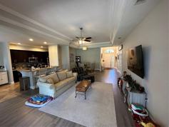 Step inside and be greeted by soaring tray ceilings, sun-filled living spaces, and an open concept layout that feels both spacious and inviting. The kitchen is a showpiece with custom cabinetry, a custom-built pantry, and seamless flow to the dining and living areas—perfect for entertaining. Retreat to the primary suite, where an updated en-suite bath provides a spa-like escape. With tile and luxury vinyl flooring throughout—no carpet in sight—this home was designed for both comfort and style.
