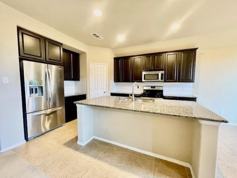 Looking for more space in your home? This is the perfect rental opportunity in Paloma Creek. A spacious four bedroom, two bath, single story home with all the luxury finishes you'll love! From the mature trees, stone lined landscaped flowerbeds, and a gorgeous full glass with iron accents front door to welcome you home. To the open island kitchen, with granite counters, stainless appliances, large corner pantry, 42 in upper cabinets, and gas cooking. Views from the kitchen of the cozy living room with a decorative wood burning corner brick fireplace. Two separate dining areas. Formal dining could accommodate a dining table or home office. Primary ensuite bath features separate vanities and a separate shower and tub. Large closet to accommodate larger wardrobes. Backyard is private and provides plenty of yard for play and relaxation.