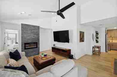 Fully Furnished Home! Welcome to your home away from home! Located in a quiet neighborhood but conveniently near all the exciting Dallas attractions, this 4-bedroom/2-bathroom retreat is an elegant getaway with cozy warm touches throughout! Whether you prefer hanging out in the spacious living room or perched at the breakfast bar, we want you to make yourselves at home here! Our home caters to both short term and medium term stays, making it an excellent choice for corporate housing needs. Whether you find yourself temporarily displaced from your home or require accomodations for your team during an extended project in our area, we provide a welcoming and comfortable "home away from home" experience. ★ KITCHEN ★ Unlock your culinary creativity in this fully equipped kitchen! With its functional layout, stainless steel appliances, and ample countertops, it has everything you need to whip up delicious meals and snacks! From sugar to spice, this kitchen has all your basic cooking essentials – including coffee! There’s also a breakfast bar with high stools available for those that enjoy being close to (but not in) the action! ✔ Fully equipped kitchen for all your cooking needs ✔ Standard appliances, including fridge, freezer, stove, oven, dishwasher, and microwave ✔ Cooking essentials including pots, pans, utensils, etc. ✔ Breakfast bar with stool ★ DINING ROOM ★ As you settle into this posh dining room to enjoy a meal around the table, don’t forget to raise a toast to good food with great drinks and even better company! Surrounded by some of your favorite people, remember to savor the simple things in life. From the curated artwork to the beautiful natural lighting, every aspect of this space has been carefully crafted to create the perfect dining experience. ✔ Dedicated dining room with plenty of natural light ✔ Dining table with seat settings for 6+ guests ✔ Decorative lighting and art décor ✔ Place settings and dining utensils ★ LIVING ROOM ★ With its arched high ceilings and bright spacious layout, this living room is the perfect place to unwind with friends and family. Grab a snack or drink, make yourselves comfortable, and settle in. The comfortable seating and beautiful decor have been selected to provide a homey touch that instantly puts you at ease. This is a great spot to hang out as a group, enjoy a movie night, or simply enjoy each others’ company! ✔ High ceilings and plenty of natural light ✔ Coffee table, designer rug, and artwork ✔ Large flat-screen TV and high-speed Wi-Fi ✔ Tasteful décor and warm atmosphere ★ BEDROOMS ★ There will be nothing but sweet dreams from the comforts of these bedrooms! With 4 bedrooms to choose from, you can rest assured that they have all been furnished with the same degree of care and attention to detail. With features such as matching bedside tables, curated artwork, and decorative touches, all you have to do is climb in and rest! After all, you’ll need your energy to explore all that Dallas has to offer! ✔ 4 bedrooms furnished with your comforts in mind ✔ A variety of sleeping arrangements – single, double, and queen beds ✔ Comfy mattress, plush pillows, and crisp linens in every room ✔ Can comfortably sleep up to 7 guests ★ BATHROOM ★ With 2 full bathrooms in this vacation home, you can take your pick. Whether you prefer a bathtub for warm bubble baths or a standing shower for ease of accessibility, both are available for your choosing. Either way, let the warm soothing water to wash away t..