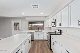 This recently remodeled house in a classic Phoenix neighborhood is a stunning blend of modern elegance and timeless charm. Across from a beautiful mid-century church, it's a captivating and picturesque location.