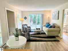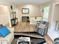Newly remodeled furnished home for rent! 3 bedroom, 2 bathrooms with 2 living spaces, upstairs and downstairs. Sits on nearly 6 acres! Includes 2 car attached garage. Large deck overlooking the wooded acreage and a kitchenette/living quarters in the lower level. Beautiful outdoor space including deck and patio as well as a fire ring. Located on east side near Grand Traverse Resort, LochenHeath, restaurants, and close to beautiful beaches. This is a must see and a great value! Home is currently fully furnished. Landlord will pay for 1 propane tank fill in the Fall per year and electric is tenant’s responsibility. Availability starting December 1st, 2025.