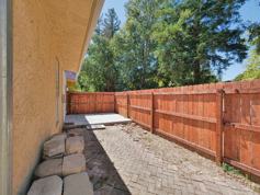 >Enclosed front yard and backyard with a hot tub.