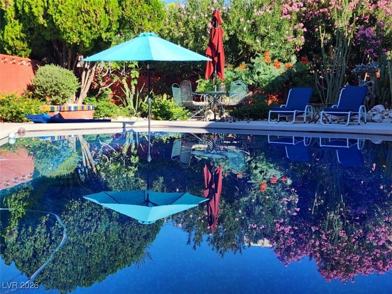 Charming 2 bedroom secluded home is nestled in Frenchman Mt foothills. Guests have full access to the pool area. Relax among the pool with lounging area, palapa and pergola. Enjoy the variety of plants & fountains. Find the neighborhood quiet & peaceful. The property overlooks downtown, mountains and the strip& is a short drive away. Nice hiking up Frenchman's Mountain &the Wetlands Park a few miles away. LOOK AT PHOTOS AND GO TO THE RIGHT HOUSE!!! Check out petroglyphs at Valley of Fire, hike at Red Rock Park, water slide parks in Henderson, Calabunga & Hollywood Park a mile away, zipline downtown. Adventuredome with rides & video arcade, helicopter tour to Grand Canyon, paddle boat tour of Lake Mead, the Hoover dam tour, year round ice rink at the Fiesta Rancho, watch a Golden Knights practice, GraviDy and Go carts. Fremont Street is 8 miles away (15 minutes) and The Strip is 12 miles away (20 minutes). ID and lease required. Guest to pay $125(covers power water & gas) per month.