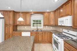 Granite kitchen countertops and a clean, updated kitchen feel