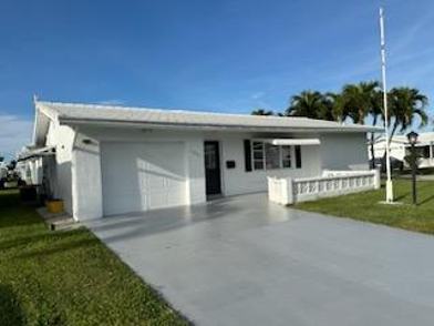 Delightful Challenger model with split bedrooms, guest room with ensuite bath, laundry in garage, double driveway, and TWO rear patios. One patio is enclosed and the other is screened. Great layout for guests, some hurricane windows and full shutters, newer appliances, and beautiful flooring throughout. A real pleasure to show. Leisureville has everything! Three clubhouses each with a pool, exercise room, shuffleboard and free golf. Within biking distance of most big box retailers, gas, auto and medical facilities. Easy access to airports and transportation. This house is ready to move into! Palm Beach Leisureville is an age-restricted community. At least 1 occupant must be at least 55 years old and no occupant can be under 18.
