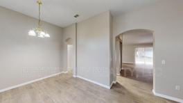 Luxury Vinyl Flooring can be found throughout this single story split plan open space home. There's a Living Room, Dining Room, a Family Room, and an open Kitchen with a Pantry.