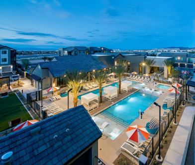 Santé has a certain je ne sais quoi. From spirited lounges and sparkling poolscapes, to inspired workspaces and cozy nooks, there's a little something for everyone here. But behind the social spaces, dripping in jewel tones, you'll find the heart of Santé; your home. A personal pied à terre fitted with quartz, wood-look plank and all the modern features and finishes for you to flourish. Blooming alongside St. Rose Parkway, Santé is the perfect starting point to discover all the treasures of the Las Vegas Valley. For big city entertainment, you can be on The Strip in just ten minutes. Beautiful hiking, golfing, and Instagram-worthy scenery are practically in your backyard, and local gems abound along the Henderson border.