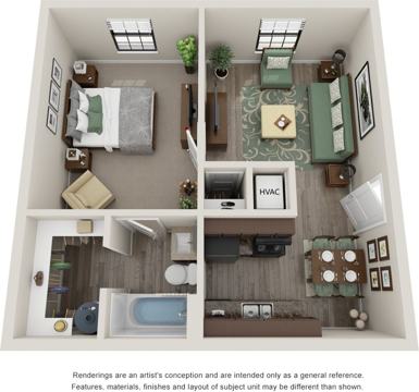1 bedroom, 1 bath: