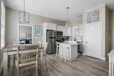 The open and spacious kitchen and dining area will surely impress. Equipped with top-of-the-line stainless steel appliances, a sleek kitchen island with bar seating for two, and fully stocked with all your cooking essentials, you'll be whipping up culinary masterpieces in no time. The dining table comfortably seats four, perfect for hosting intimate gatherings or enjoying a meal with loved ones. Venture outside the kitchen to discover a delightful outdoor patio retreat. Relax on comfortable seating while enjoying the fresh air and soaking up the beautiful Charleston weather.