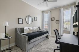 When it's time to rest your head after an eventful day, you'll find two well-appointed bedrooms waiting for you. The first bedroom is versatile with a day bed that includes a twin trundle for overnight guests. It even includes a desk for all your work-from-home needs and would make the perfect home office. The spacious master bedroom boasts a luxurious queen-size bed, large dresser and a Smart TV.