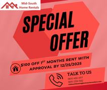 ***$100.00 OFF FIRST MONTHS RENT IF APPROVED BY 12/25/2025***