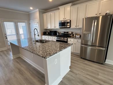 • Open-concept layout with large kitchen island