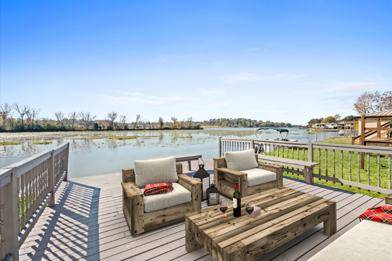 * Large Back Deck: Immerse yourself in scenic views and serene lake breezes. Perfect for morning coffees or evening relaxation. Has Bulkhead to Attach your Boat!