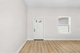 Home has a open-floor plan with vaulted ceilings, quartz countertops in both the kitchen and baths. Kitchen has shaker cabinets with modern hardware and soft close cabinet doors. Luxury vinyl plank flooring throughout the home.